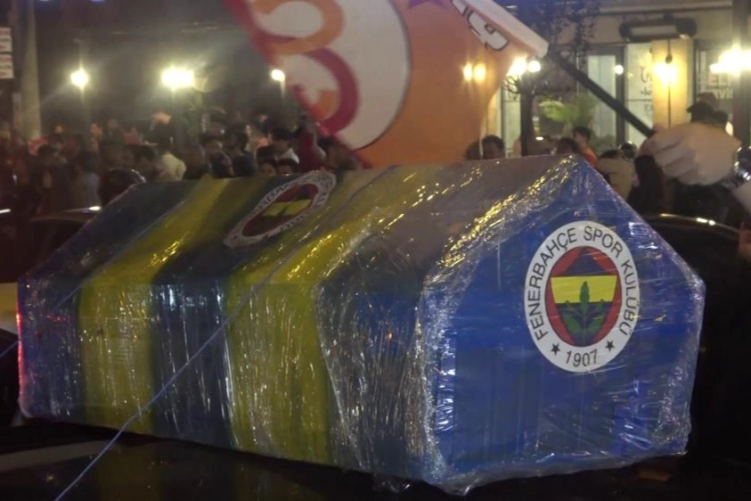 Trendyol Süper Lig'de 25. kez şampiyon olan Galatasaray'ın taraftarları Bursa'da meydanları doldurarak Fenerbahçe tabutuyla şampiyonluk turu attı.