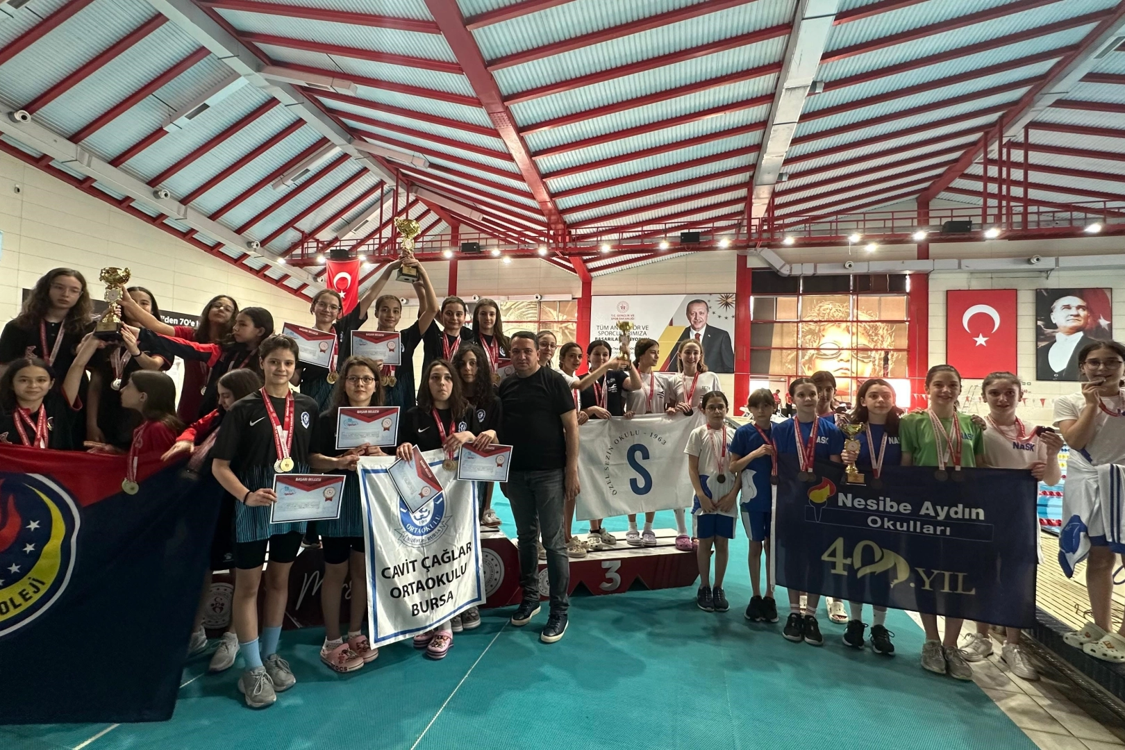 Mersin'de düzenlenen ve Türkiye'nin farklı illerinde bulunan okullar arasında düzenlenen yarışmada, Bursa'dan katılım sağlayan Cavit Çağlar Ortaokulu öğrencileri Bilge Bektaş, Meryem Çetin, Azra Derin Karabulut, Meyra Ulu, Azra Kocaman Büşra Şahin, Menekşe Kuzucuk ve Ela Bilgiç 14 altın ve 3 gümüş madalya alarak Türkiye şampiyonu oldu. Turnuva boyunca öğrencilerine destek veren Cavit Çağlar Ortaokulu Müdürü Ramazan Yürük, "Öğrencilerimizi tebrik ediyor, başarıları ile gurur duyuyorum. Hiçbir başarının tesadüf olmadığını biliyoruz. Yönetim olarak akademik başarının yanında, sportif ve kültürel başarılarını da önemsiyoruz. Öğrencilerimize, velilerimize ve antrenörlerimize teşekkür ederim" dedi.