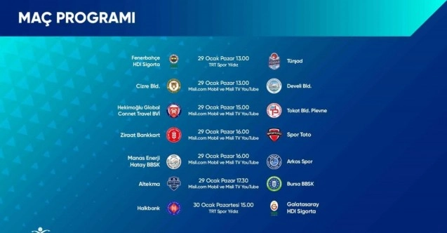 Efeler Ligi’nde haftanın programı şu şekilde: