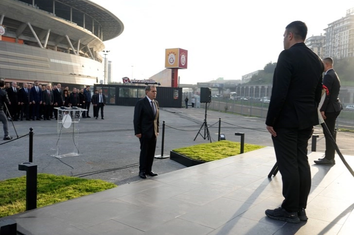 Galatasaray Spor Kulübü Başkanı Dursun Aydın Özbek, yönetim kurulu üyeleri ve kulüp personellerinin katıldığı tören, Atatürk, Tevfik Fikret ve Ali Sami Yen Anıtı'nın bulunduğu alanda gerçekleştirildi. Başkan Dursun Aydın Özbek, heykel önüne Galatasaray Spor Kulübü'nü temsilen çelenk bıraktı. Ardından 09.05'te Atatürk'ün anısına saygı duruşu yapıldı. İstiklal Marşı'nın okunmasından sonra Başkan Dursun Aydın Özbek kürsüye gelerek şu konuşmayı yaptı: "Bugün, Türk milletinin bağımsızlık mücadelesinin önderi, Cumhuriyetimizin kurucusu, büyük devlet adamı Gazi Mustafa Kemal Atatürk’ü ebediyete intikalinin yıl dönümünde bir kez daha şükran, minnet ve sonsuz özlemle anıyoruz. Atatürk, yalnızca bir komutan değil; bir vizyonerdir. Onun önderliğinde Türk milleti, karanlıktan aydınlığa; esaretten özgürlüğe uzanan bağımsızlık mücadelesini başarıyla sürdürmüştür. Bugün özgürce nefes alabiliyorsak, düşünebiliyorsak, üretebiliyorsak bunu onun aklına, cesaretine ve ileri görüşlülüğüne borçluyuz. Biz Galatasaraylılar için Atatürk’ü anmak, yalnızca bir tören geleneği değildir. Galatasaray; Cumhuriyet değerleriyle yoğrulmuş, laik, çağdaş ve evrensel bir vizyon benimsemiş bir kurumdur.