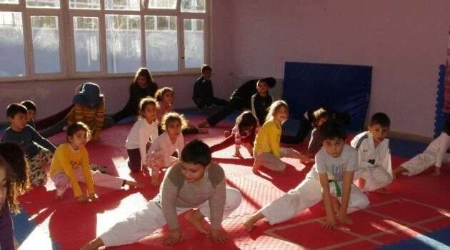 Kırşehir’in Kaman İlçesi Gençlik Merkezi tarafından açılan taekwondo kursunda 34 genç ve çocuk eğitim görüyor.