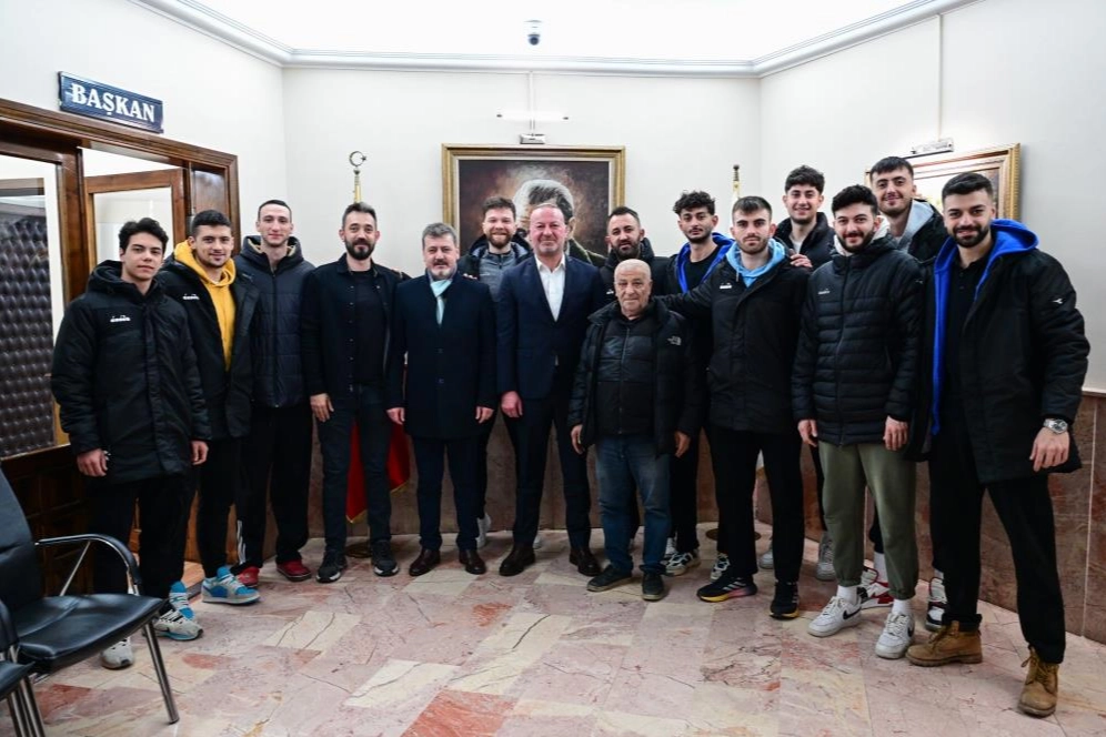 Başantrenör Mustafa Cengiz yönetiminde 2. Lig 2. Grup’ta mücadele eden Karacabey Belediyespor Voleybol Takımı, 7 Şubat’ta Eskişehir’de start alacak olan müsabakalar öncesinde önceki gün Belediye Başkanı Fatih Karabatı’yı makamında ziyaret etti. Buluşmada Karacabey Belediyespor Kulüp Müdürü Mert Solak ve Voleybol Koordinatörü Metin Karakiraz da yer aldı. Karacabey Belediyespor Voleybol Takımı’nın bu sezon ortaya koyduğu başarılı performanstan gurur duyduklarını belirten Belediye Başkanı Fatih Karabatı, "Başarı yolunda emin adımlarla ilerleyen takımımıza desteğimiz tam. Temsilcimizin 1. Lig’e adını yazdıracağına yürekten inanıyoruz. Play-off sürecinde kendilerine yürekten başarılar diliyorum. Mücadele azminiz ve takım ruhunuzla Karacabey’i en iyi şekilde temsil edeceğinize inanıyorum" dedi. Karabatı, takımın ortaya koyduğu performanstan dolayı duyduğu gururu dile getirerek, voleybol takımına olan inancını ve desteğini belirtti. Karacabey Belediyespor Voleybol Takımı Başantrenörü Mustafa Cengiz de, "Belediye Başkanı Fatih Karabatı'ya her zaman yanımızda olduğu ve desteklerini esirgemediği için teşekkür ediyoruz. Karacabey Belediyespor Voleybol Takımı olarak şampiyonluğa inanıyoruz ve bu hedefe ulaşacağımızdan eminim. 1. Lig'e çıkma yolunda kararlıyız ve bu hedefi başaracağız. Takımımız, mücadele azmi ve birlikte çalışma ruhuyla Karacabey’i en iyi şekilde temsil edecek ve şehrimizi gururlandıracaktır" diye konuştu. Öte yandan temsilcimiz Karacabey Belediyespor, Eskişehir’de 7-9 Şubat tarihlerinde düzenlenecek TVF 2. Ligi Play-Off Yarı Final Etabı ilk maçında 7 Şubat’ta saat 14.00’te Arkas Spor Kulübü maçına çıkacak. Daha sonra 8 Şubat’ta saat 12.00’de Midyat Belediyespor ile kozlarını paylaşacak olan Karacabey Belediyespor, yarı final etabının son maçında 9 Şubat günü saat 13.00’te TVF Spor Lisesi ile karşı karşıya gelecek. Bu müsabakaların tümü Eskişehir Şehit Anıl Gül Spor Salonu’nda oynanacak.