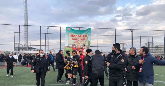Kayseri Süper Amatör Küme’de şampiyonluk mücadelesi veren iki ekibin maçında bitiş düdüğüyle saha karıştı. Müsabaka karşılıklı atılan goller ile 2-2 sona erdi. Maçın bitiş düdüğü sonrasında Kayserigücü takımı teknik heyet ve oyuncuları, hakeme yoğun itirazlarda bulundu. Bu arada Kayserigücü takımından Eren Torbalı, kendisine hakaret ettiğini söylediği kişiye tepki gösterirken futbol sahası karıştı. Emniyet güçleri araya girerek olayları yatıştırmaya çalıştı.