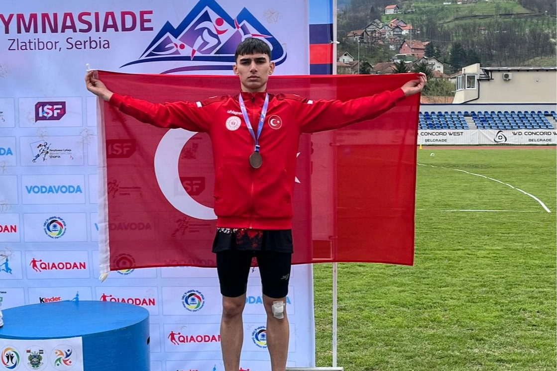Uluslararası Okul Sporları Federasyonu (ISF) tarafından Sırbistan’ın Zlatibor kentinde düzenlenen U15 Gymnasiade Liseler Arası Dünya Şampiyonası sona erdi. 54 ülkeden 2 bin 548 sporcunun katıldığı bu dev organizasyonda Osmangazi Belediyespor Kulübü’nün milli sporcusu Muhammed Esad Ayna büyük bir başarıya imza attı. Milli sporcu, 300 metre engelli yarışında 39.58’lik derecesiyle dünya üçüncüsü oldu. Bronz madalyanın sahibi olan Ayna, Türkiye’ye büyük gurur yaşattı. Osmangazi Belediye Başkanı Erkan Aydın, dünya üçüncüsü Muhammed Esad Ayna’yı tebrik ederek başarılarının devamını diledi.