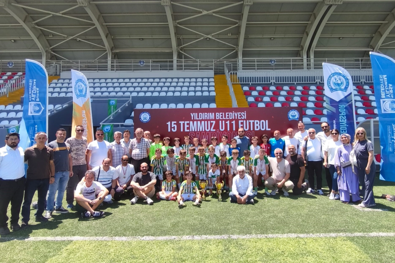 15 Temmuz Demokrasi ve Milli Birlik Günü haftası yaklaşırken, spor ve milli bilinci aynı sahada buluşturan Yıldırım Belediyesi, düzenlediği ‘15 Temmuz U-11 Futbol Turnuvası’ ile ilçede futbol şöleni yaşattı. Vakıf Bera Spor Tesisleri’nde düzenlenen turnuvaya 25 takım ve 400 sporcu katıldı. İki gün süren turnuva kıran kırana maçlara sahne oldu. Kardeşlik, dayanışma ve centilmenlik ruhu içinde geçen mücadelelerin ardından, normal süresi 2-2 biten final maçını penaltı atışlarıyla kazanan Bursaspor şampiyon oldu. Çağlayan Spor’un ikinci, Kestel Genç Yetenekler Spor’un üçüncü olduğu turnuvayı Fethiye İdman Yurdu ise dördüncü sırada tamamladı.