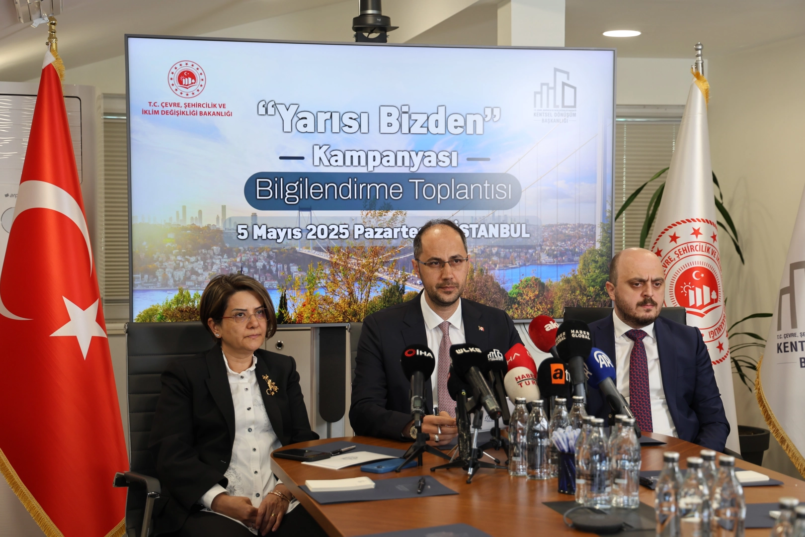 Vatandaşların başvuru süreci hakkında bilgi aldığı Marmara Kentsel Dönüşüm Genel Müdürlüğü’nde yapılan toplantıda, kampanyanın detayları ve süreçteki son gelişmeler kamuoyuyla paylaşıldı. Çevre, Şehircilik ve İklim Değişikliği Bakanlığı Kentsel Dönüşüm Başkanı Hakkı Alp, basın mensuplarına yaptığı açıklamada, "6306 sayılı kanun kapsamında, 2012 yılından bu yana İstanbul’da 923 bin bağımsız birimin dönüşümü Çevre, Şehircilik ve İklim Değişikliği Bakanlığımız tarafından tamamlanmıştır. Sahada, Başkanlığımızın doğrudan veya ilçe belediyeleriyle birlikte yürüttüğü alan bazlı dönüşüm projeleri kapsamında 114 bin bağımsız birimin dönüşüm süreci devam etmektedir. Buna ek olarak, 43 bin bağımsız birimin inşaatı İstanbul genelinde fiilen sürmektedir. Böylece toplamda 157 bin bağımsız birimin inşaat faaliyetleri aktif olarak yürütülmektedir" diye konuştu. "İstanbul’da şu an toplamda 208 bin bağımsız birimin dönüşüm süreci devam etmektedir" Alp, İstanbul’da 208 bin bağımsız birimin dönüşüm sürecinin devam ettiğini söyleyerek, "Ayrıca, riskli yapı ilanı yapılmış ve dönüşüm süreci devam eden 51 bin bağımsız birim de bu kapsamda yer almaktadır. Bu veriler ışığında, İstanbul’da şu an toplamda 208 bin bağımsız birimin dönüşüm süreci devam etmektedir. Daha önce tamamlanan 923 bin bağımsız birime ek olarak bu dönüşüm faaliyetleri hızla sürdürülmektedir. Çevre, Şehircilik ve İklim Değişikliği Bakanımız Sayın Murat Kurum’un vizyonu ve talimatları doğrultusunda, Kentsel Dönüşüm Başkanlığı olarak Türkiye genelinde 81 ilde, İstanbul’da ise 39 ilçede kentsel dönüşüm çalışmalarımıza aralıksız devam ediyoruz. Sahada, vatandaşlarımızla birlikte rızaya dayalı bir dönüşüm süreci yürütmekteyiz. Bu çerçevede kamuoyuyla paylaşacağımız "Yarısı Bizden" kampanyası, Türkiye’de sade İstanbul için yayımlanan, bilim adamlarının bizlere bildirdiği verilere göre biran önce İstanbul’da ki sağlıksız yapı stokunun hızla dönüştürülmesini amaçlayan, doğrudan yapım desteği içeren bir projedir. Kampanya kapsamında vatandaşlarımız, herhangi bir şekilde e-Devlet üzerinden başvuru yapmaksızın, binalarındaki komşularıyla anlaşarak lisanslı kuruluşlar aracılığıyla riskli yapı tespiti yaptırıp, bulundukları ilçe belediyelerine başvurarak sürece dahil olabileceklerdir" ifadelerini kullandı. "Konutlar için hibe miktarı 875 bin TL, kredi miktarı 875 bin TL, taşınma ve tahliye desteği ise 125 bin TL olarak güncellendi" Konutlar için hibe miktarının 875 bin TL, kredi miktarının 875 bin TL, taşınma ve tahliye desteğinin ise 125.000 TL olarak güncellendiğini hatırlatan Alp, "İş yerleri için ise hibe ve kredi miktarları 437 bin 500 TL, taşınma ve tahliye desteği yine 125 bin TL olarak güncellenmiştir. Kampanyaya olan ilginin, özellikle yakın zamanda meydana gelen depremlerin ardından artış gösterdiği sahada net bir şekilde gözlemlenmektedir. Bu durum, vatandaşlarımızın dönüşüme yönelik duyarlılığının artması açısından memnuniyet vericidir. Kampanya kapsamında yalnızca bireysel binalar değil, aynı zamanda ada bazlı, 100 ila 150 bağımsız birimin bulunduğu siteler de yüzde 100 uzlaşma sağlayarak başvuruda bulunmaktadır. Bu tür büyük ölçekli projelerde, başvurular Marmara Kentsel Dönüşüm Genel Müdürlüğü aracılığıyla alınmakta; inşaat süreci ise Bakanlığımızın ilgili kuruluşları olan Toplu Konut İdaresi Başkanlığı (TOKİ) ve Emlak Konut GYO ile birlikte yürütülmektedir. Bu desteklerdeki en önemli hususlardan biri, başvuran vatandaşların gelir durumuna veya kredi puanına bakılmaksızın sürece dahil edilebilmesidir. Tüm ödemeler şeffaf biçimde yapılmakta olup, inşaat süreci şu şekilde taksitlendirilmektedir. Anlaşma ve inşaat başlangıcında yüzde30, kaba inşaatın tamamlanmasında yüzde 30, yapı kullanma izin belgesi aşamasında yüzde 30, inşaatın tamamlanmasıyla ise yüzde 10’luk kısım 4 taksitle ödemeyi tamamlıyoruz. Kredilerin geri ödemesi, ruhsat alındıktan iki yıl sonra, yapı kullanma izin belgesi alınmasıyla birlikte başlamaktadır. İlk yıl faizsiz olan krediler, toplamda 10 yıl vade ile geri ödenmektedir. Faiz oranı ise ikinci yıldan itibaren TÜFE’nin yarısı kadar uygulanmaktadır" şeklinde konuştu. "Kampanyadan yararlanan toplam bağımsız birim sayısı 60 bine ulaşmıştır" Kampanyadan yararlanan toplam bağımsız birim sayısının 60 bine ulaştığını aktaran Alp, "Bugün itibarıyla İstanbul’un 39 ilçesinde toplam 22 bin 503 bağımsız birim, "Yarısı Bizden" kampanyasından faydalanarak dönüşüm sürecine girmiş ve inşaatlarına başlanmıştır. Ayrıca, 41 bin bağımsız birim de uzlaşma süreci ve proje hazırlığı gibi aşamalarda çalışmalarını sürdürmektedir. Böylece kampanyadan yararlanan toplam bağımsız birim sayısı 60 bine ulaşmıştır. Hibe ve kredi desteklerinin artırılmasıyla birlikte, evinin riskli olduğunu düşünen tüm vatandaşlarımızı bu kampanyaya katılmaya davet ediyoruz" dedi. "Devletin bize sağladığı büyük bir imkan" Kampanyadan yararlanan Müteahhit Erkan Fettahoğlu, "Vatandaşlarla anlaştık. O sırada hibe desteği çıktı. Kat ittifakı kurduk, daha sonra Kentsel Dönüşüm Merkezine başvurumuzu yaptık. Yardımımız çıktı. İmzaları attık. Devletin bize sağladığı büyük bir imkan bu. Yarısını devlet karşıladı, millete faydası oldu" dedi. Kampanyadan yararlanan Seyhan Özsoy ise, "Binamız temelden su alıyordu. Binamızın demirlerinin çürüdüğünü gördük. Apartmanca karar verdik, yıkım kararı aldık. Bu kampanya bizi çok rahatlattı" şeklinde konuştu.