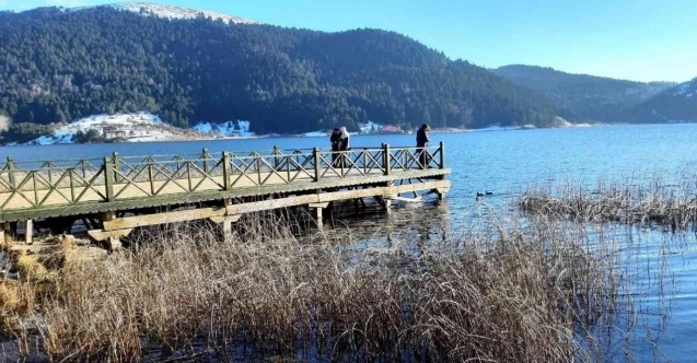 Şehir merkezine 37 kilometre uzaklıkta bulunan doğa harikası Abant Gölü Milli Parkı’nda geçtiğimiz günlerde etkili olan kar yağışı yerini güneşli havaya bıraktı. Hava sıcaklığının 1 derece ölçüldüğü bölgede, Abant Gölü’nün kıyıları kısmi buz tuttu. Soğuk havada da ziyaretçilerini ağırlamaya devam eden Abant, kış manzarasıyla fotoğraf tutkunlarına kartpostallık manzaralar sundu. Havanın soğuk olmasına aldırış etmeyen vatandaşlar, bölgeyi gezerek bol bol hatıra fotoğrafı çekti.