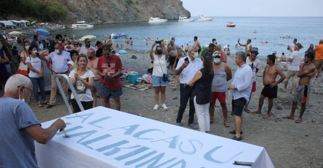 Antalya’nın Kemer ilçesindeki Alacasu Koyu’nun yıllığı 610 bin TL’den bir şirkete ihale edilmesi konusunda Kültür ve Turizm Bakanı Mehmet Nuri Ersoy’un dün “1. Derece Arkeolojik Sit alanı içinde kalıyor. İtiraz ettik, iptal edileceğini düşünüyorum” açıklamasının ve koyun ihale edilmesini istemeyenleri bunu net şekilde söylemeye çağırmasının ardından, bir grup vatandaş koya giderek itiraza destek verdi.