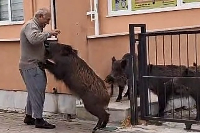 Edinilen bilgiye göre, ilçe merkezinde yemek arayan domuz sürüsü özel bir anaokulun yanındaki bahçeye girdi. Bahçede gezinen domuzları gören mahalle sakinlerinden bir vatandaş ise elinde ekmekle domuzların yanına geldi. Elindeki ekmekleri bölerek domuzlara veren vatandaş, domuzların okulun yanındaki bahçeden çıkmasını sağladı. O anları ise çevredeki bir başka vatandaş cep telefonu kamerası ile görüntüledi. Görüntülerde domuzların ekmekleri yemek için birbiriyle yarıştığı görüldü.