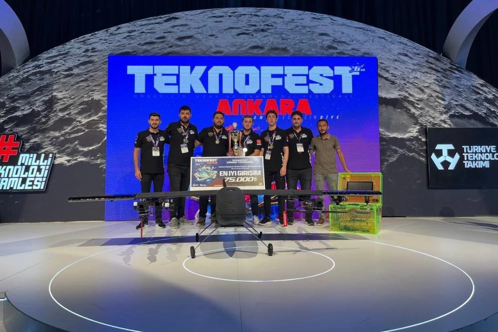 Robotlar ve Akıllı Sistemler alanında uzmanlaşan üniversite olarak Ar-Ge çalışmalarına ve girişimciliğe özellikle önem verdiklerini belirten BTÜ Rektörü Prof. Dr. Naci Çağlar, “Geliştirdikleri projelerle savunma sanayi ve üretim sektörüne yenilik getirecek değerli çalışmalara imza atan öğrencilerimizi kutluyor ve başarılarının artarak devam etmesini diliyoruz.” dedi. BTÜ VİSİON R&D Takımı Uzay, Havacılık ve Savunma Teknolojileri Ön Kuluçka Kategorisi’nde En İyi Girişim 1’incilik ödülünükazanırken BTÜ İNNOSENS Robot Teknolojileri Takımı da Haberleşme ve İletişim Teknolojileri Ön Kuluçka Kategorisi En İyi Girişim 1’incilik ödülünüalmaya hak kazandı. Dikey kalkabilen 5 motorlu İnsansız Hava Aracı ile 1’incilik ödülünü kazanan BTÜ VİSİON R&D Takımı, geliştirdiği hidrojen yakıtlı İHA ile yarışmanın gözdesi oldu. Proje hakkında bilgi veren Takım Kaptanı Makine Mühendisliği dördüncü sınıf öğrencisi İbrahim Dur, “Geliştirdiğimiz insansız hava aracımızın dikey iniş-kalkış yapmasını sağlayan 4 motoru elektrik, 5. ve ana motoru ise hidrojen enerji teknolojisi ile çalışmaktadır. Yapay zekâ destekli görüntü işleme teknolojisi ile tespit ettiği düşman unsurların koordinatlarını gerekli hesaplamalar sonucu belirleyen İHA’mız, bu verileri gövdesinde mühimmat olarak bulundurduğu 3 adet kamikaze drona iletmektedir. Ardından bu kamikaze dronlar hedefe yönelerek kilitlenmekte ve yüksek hassasiyet ile hedefi imha etmektedir. Projede yer kontrol istasyonu, gimbal elektronik kutu, kara kutu, haberleşme sisteminde anten takip cihazı ve görev ara yüzü sistemleri gibi pek çok sistem yerli olarak üretilmektedir.” ifadelerini kullandı. Kaynak izi sensörüyle endüstriyel kaynak işlemlerinde kalite ve verimlilik artacak Endüstriyel kaynak işlemlerine yönelik geliştirdikleri “Kaynak İzi Sensörü” projesi ile Haberleşme ve İletişim Teknolojileri Ön Kuluçka Kategorisinde En İyi Girişim 1’licilik ödülünü alan BTÜ İNNOSENS Robot Teknolojileri Takımı,endüstriyel kaynak işlemlerini optimize edecek yeni bir sistem geliştirdi. Proje ile ilgili detayları aktaran takım kaptanı Mekatronik Mühendisliği yüksek lisans öğrencisi Ali Yıldız, “Endüstride kaynak işleminin manuel yapılması üretim hızını düşürmekle birlikte kalifiye eleman ihtiyacını da ortaya çıkartmaktadır. Bu sebeple firmalar kaynak süreçlerini otonomlaştırmak, kaynak kalitesini arttırmak ve kalifiye eleman ihtiyacını ortadan kaldırmak için endüstriyel robotlara veya kaynak otomasyon robotlarına yönelmektedir. Mevcut robotik sistemler önceden planlanmış rotada hareket ederek kaynak işlemini yapmakta ancak kaynak esnasında oluşan yüksek ısı nedeniyle kaynak parçaları deforme olarak önceden planlanmış rotada sapmalar oluşabilmektedir. Yine kaynak parçalarının üretiminin hassas olmaması da robotların kaynak prosesini sağlıklı bir şekilde yapmasını engellemektedir. Bu sorunların giderilmesi için robotların kaynak ağzı boyunca yönlendirilmesini sağlayacak kaynak izi takip sensörlerine ihtiyaç olduğunu gözlemledik. Üzerinde çalıştığımız proje çerçevesinde da kaynak robotlarına bağlı kaynak torcunun kaynak ağzı boyunca gerçek zamanlı yönlendirilmesini sağlayacak ve parlak yüzeyli malzemelerin kaynağında çalışacak bir sensör geliştirdik.” şeklinde konuştu.