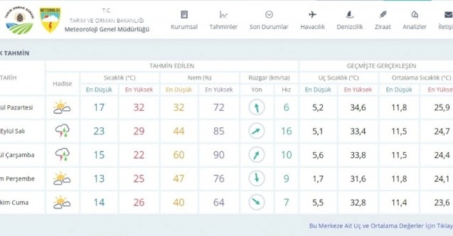 Meteoroloji Genel Müdürlüğünden alınan verilere göre, parçalı bulutlu hava yerini gök gürültü sağanak yağışa bırakacak. Yarın en yüksek hava sıcaklığı 29 derece olurken, çarşamba günü ise hava sıcaklığı 22 dereceye kadar düşecek. Çarşamba günü nem oranının ise en yüksek yüzde 90 olacağı tahmin edilirken, perşembe ve cuma ise yağış beklenmiyor.