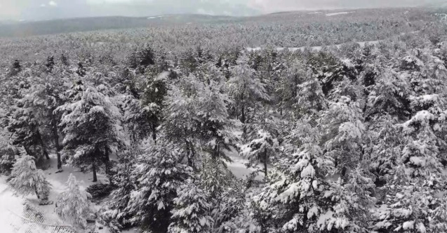 Kar yağışının durması ile birlikte şehirde doğa beyaza bürünürken, ağaçların üzeri de karla kaplandı. Adeta görsel bir şölen oluşturan beyaz örtülü çam ağaçları, görenlerde hayranlık uyandırdı.