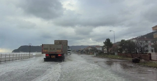 Kastamonu’nun Cide ilçesinde etkili olan fırtına sebebi ile dalgaların vurduğu sahil yolu su altında kaldı.