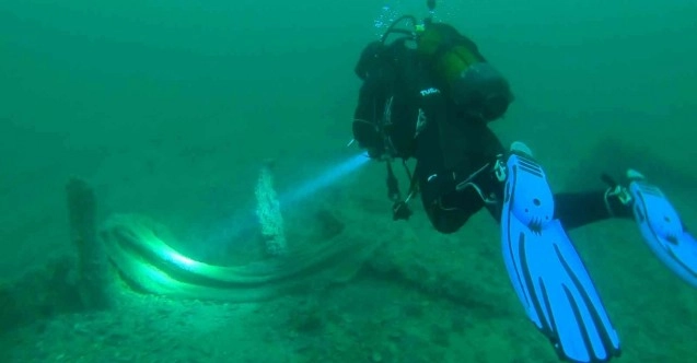 Çanakkale İl Tarım ve Orman Müdürlüğüne bağlı su ürünleri kontrol ekipleri, 50 metre uzunluğunda 250 kilogram hayalet ağ çıkardı.