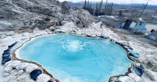 Ağrı’nın Diyadin ilçesinde bulunan ve cilt hastalıkları başta olmak üzere birçok hastalığa iyi geldiği düşünülen kaplıcalar, soğuk havalarda bile sıcak suyuyla ziyaretçilerini ağırlıyor.
