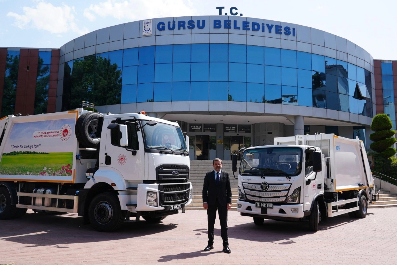 Gürsu Belediyesi, hazırladığı projeler ve kazandığı hibelerle Türkiye’ye adını duyurmaya devam ediyor. Çevre Şehircilik ve İklim Değişikliği Bakanlığı ile yapılan görüşmeler sonrasında, Bakanlık tarafından Gürsu Belediyesi’ne hibe olarak iki adet araç verildi. Gürsu Belediye Başkanı Mustafa Işık, "Sayın Bakanımız Murat Kurum’a öncelikle bizlere sağladığı bu destekten dolayı çok teşekkür ediyoruz. İki adet aracımızı Temizlik İşleri Müdürlüğümüz ve İklim Değişikliği ve Sıfır Atık Müdürlüğümüz bünyesinde kullanılmak üzere teslim aldık. Hem Bakanlığımıza hem de Sayın Bakanımıza çok teşekkür ediyoruz" dedi.