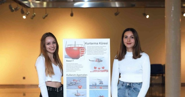 Elifnur Akdolan ve Zeynep Gönülalan, Endüstriyel Tasarım Bölümü Dr. Öğretim Görevlisi Ezgi Ozan Avcı’nın yürüttüğü Tasarım Yarışması Projeleri dersi kapsamında tasarladıkları ve kendilerine birincilik getiren projeyi anlattı. Öğrenciler, Kastamonu Bozkurt’taki sel felaketinde çatıda tek tek kurtarılmayı bekleyen aileyi televizyonda izledikten sonra böyle bir tasarım yapmaya karar verdiklerini belirterek, “Sel olduğu zamanlarda insanların evini su basınca genelde herkes evin çatısına kaçıyor. Bunun örneklerini son zamanlarda yaşanan sel baskınlarında da gördük. İnsanlar gruplar halinde çatılarda mahsur kalıyor ve kurtarma için helikopterler geliyor. Bu helikopterlerden profesyonel bir kişi aşağıya halatla iniyor ve sadece bir kişiyi kendine bağlayıp helikoptere çıkartabiliyor. Uzun bir sürede, sadece tek bir kişiyi kurtarılabiliyor. Bu süreyi kısaltacak ve bir seferde daha fazla insanın kurtarılmasını sağlayacak bir tasarım yapmak istedik. Tasarladığımız kurtarma küresi sayesinde, insanları gruplar halinde aynı anda kurtarmak ve sarsmadan taşıyabilmek mümkün olabilecek” dedi.