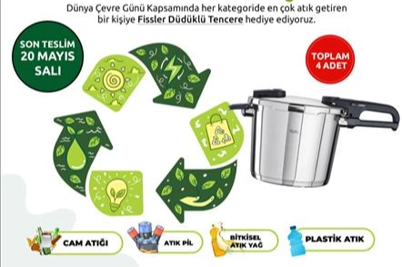İnegöl Belediyesi’nden yapılan açıklamada Temizlik İşleri Müdürlüğü organizasyonuyla “Çevreyi Korumak Mahallede Başlar” sloganıyla yeni bir kampanyanın başladığı duyuruldu. 20 Mayıs Salı tarihine kadar cam atığı, atık pil, bitkisel yağ ve plastik atık getiren 1 kişiye düdüklü tencere hediye edilecek.