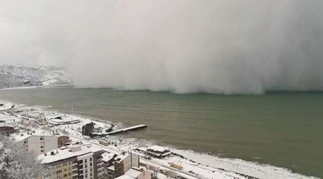 Artvin’in Hopa ilçesinde denizden gelen kar fırtınası cep telefonu kameraları ile saniye saniye kaydedildi. Hopa ilçesinde kaydedilen bu görüntülerde deniz üzerinden gelen Kar Fırtınası şehir merkezine doğru ilerlemesi görülüyor. Hopa ilçesine bağlı Kuledibi Mahallesi Şahin Tepesi mevkiinden Serkan Yağcı tarafından çekilen görüntüler dün akşam üzeri saat 17:00 civarlarında çekilirken, görüntülerde deniz üzerinden gelen kar fırtınası şehir merkezine doğru ilerliyor.