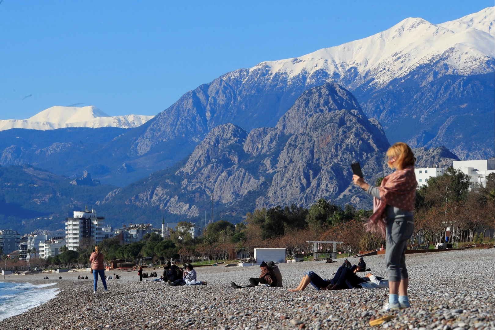 Hafta içi olmasına rağmen Antalyalılar turkuaz rengi deniz ve karlı dağ manzarası eşliğinde güneşli havanın tadını çıkardı. Turizm kenti Antalya'da yaklaşık 10 gündür devam eden şiddetli yağış ve fırtınanın ardından kent sakinleri güneşli bir güne uyandı. Yağmur ve şiddetli rüzgar nedeniyle günlerdir evlerinden dışarı çıkamayan Antalyalılar dünyaca ünlü Konyaaltı Sahili'ne gelerek güneşli havanın tadını çıkardı. Bazı vatandaşlar aileleri ve sevdikleri ile birlikte sahilde kahvaltı yapmayı tercih ederken, kimileri de karlı dağların manzarası eşliğinde sahilde oturdu. Yabancı turistler ise 18 derece civarında ölçülen hava sıcaklığı ile kış ortasında turkuaz rengine bürünen denize girmeyi tercih etti. "Antalya'nın gerçek yüzü bu" Hafta içi olmasına rağmen Konyaaltı Sahili'nde güneşli havayı eşi ile birlikte kahvaltı yaparak değerlendiren Esin Altıner, "İstanbul'dan geliyoruz, ama 5-6 aydır Antalya'da kalıyoruz. Haftalardır evdeydik, dışarı bile çıkamıyorduk. AVM'lere bile giderken korkuyorduk. Şimdi hava çok güzel, eşimle birlikte kahvaltı yapmak için geldik. İnşallah böyle devam eder, Antalya bu şekilde güzel. Antalya'nın gerçek yüzü bu bence, inşallah yağışlar diner" dedi. Kahvaltılarını yapmak için sahile geldiler Güneşli havayı fırsat bilen bazı vatandaşlar karlı dağ manzası ile Konyaaltı Sahilini fotoğraflamayı ihmal etmedi. Günler süren yağışlı havanın ardından güneşin açmasını memnuniyet ile karşıladığını söyleyen Enes Esin, "Günlerdir hava yağışlı ve rüzgarlıydı. Antalya'nın her yerini su bastı. Günler süren bu sıkıntıdan kurtulduk ve güneş açtı. Biz de kahvaltımızı sahilde yapmak için geldik. Herkesi sahile bekliyoruz" ifadelerini kullandı. Fırtınanın ardından ellerinde dedektörlerle sahile gelen bazı vatandaşlar ise yaz aylarında denize düşürülen ve dalgaların sahile vurduğu kıymetli eşyaları aradı.