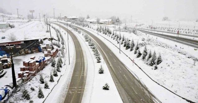 Samsun’un Kavak ilçesinde etkili olan kar yağışı sonrası ilçe merkezi ve Samsun-Ankara karayolu beyaza büründü.