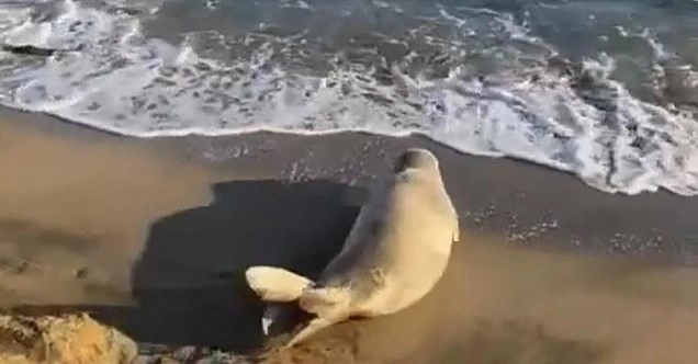 Adana’nın Karataş ilçesi kıyılarında nesli tükenme tehlikesinde olduğu için koruma altına alınan ’Akdeniz foku’ geldi.