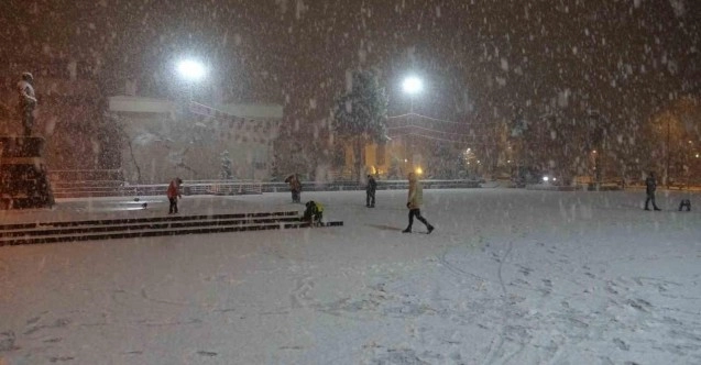 Malatya şehir merkezinde akşam saatlerinde yağmurla karışık etkisini gösteren kar şehri beyaz örtüyle kapladı.