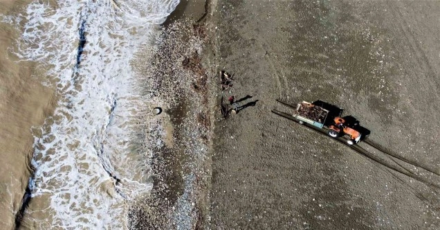Mersin’de taşkın sular ile selin önüne katarak Alata deresinden denize döktüğü odunlar, kışlık yakacak olması için vatandaşlar tarafından toplandı.