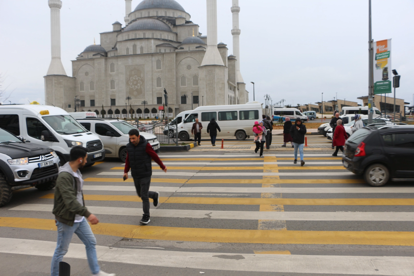 Üst ve alt geçidin bulunmadığı bölgede, camiye gitmek ya da ilçe minibüslerine binmek isteyen vatandaşlar yoğun trafikte tehlikeyle burun buruna kalıyor. Trabzon'un Ortahisar ilçesindeki Moloz mevkiinde inşa edilen Doğu Karadeniz Bölgesi'nin en büyük camisi olan Hanife Hatun Camii çevresinde yaşanan yaya güvenliği sorunu, vatandaşları endişelendiriyor. Camiye ibadet için gelenler ile ilçelere giden minibüs hatlarını kullanmak isteyenler, üç şeritli karayolunda bulunan yaya geçidini kullanarak karşıya geçmeye çalışıyor.