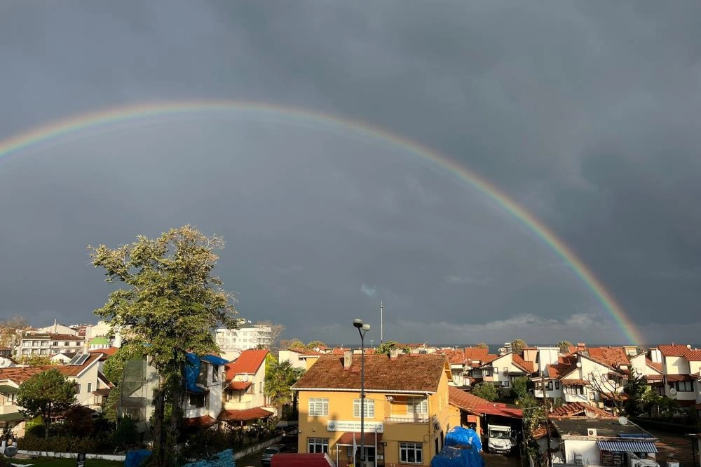 İlçe merkezinde sabah saatlerinde doğru yağış etkili oldu. Yağışın hemen ardından Kent Merkezinde bir gökkuşağı belirdi. Şehrin farklı noktalarından da net şekilde görülebilen gökkuşağı, adeta görsel şölen oluşturdu. O anlar cep telefonu kamerası ile fotoğraflandı. Doğanın eşsiz gösterisi, kısa süre sonra gözlerden kayboldu.