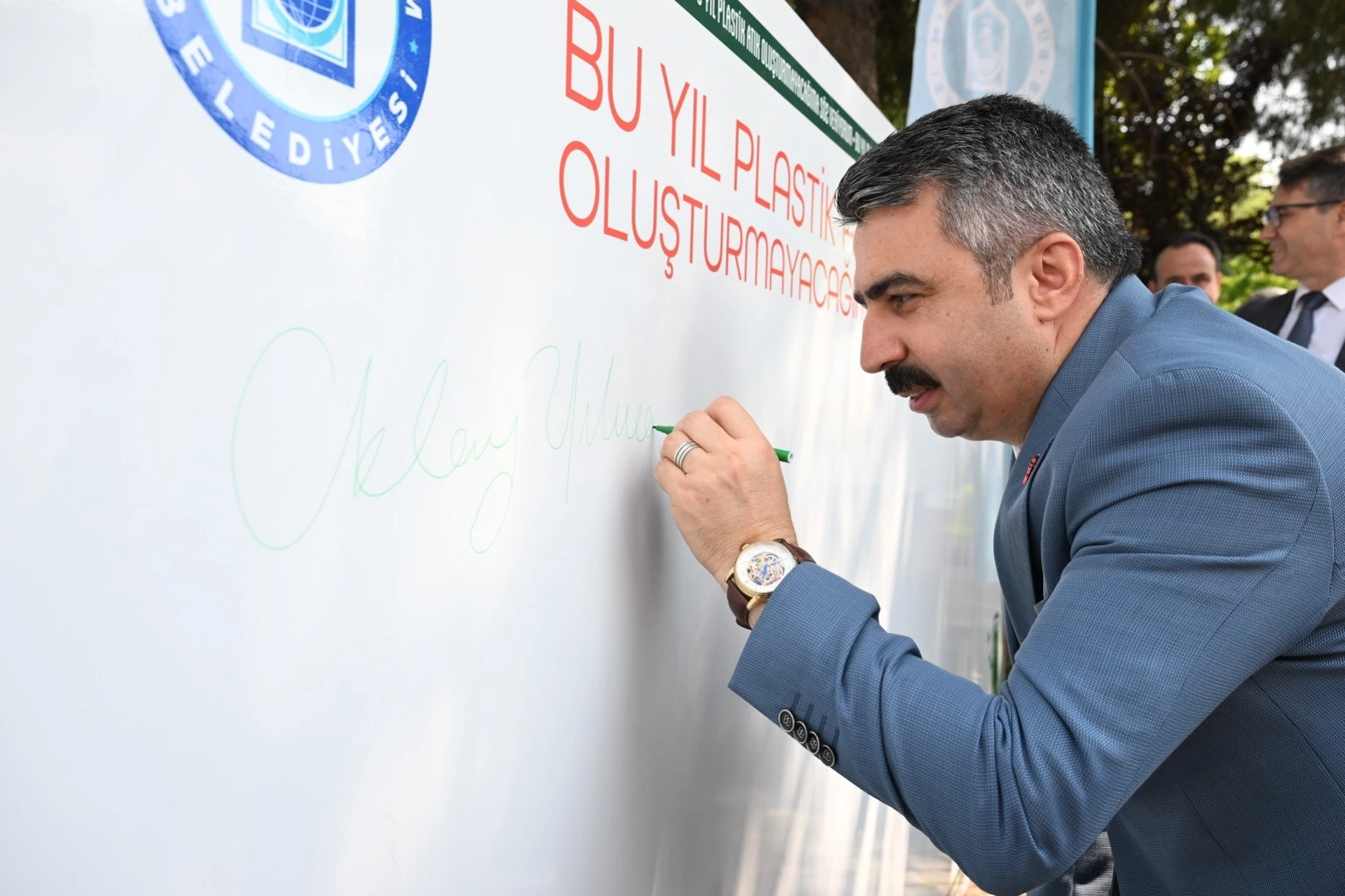 Plastik atık oluşturmayacağız Yıldırım’ın 700 bin insanın ortak evi olduğunu hatırlatan Yıldırım Kaymakamı Metin Esen de "Modern yaşamın ihtiyaçları doğrultusunda başta plastik olmak üzere birçok şeyi kullanmak zorunda kalıyoruz. Ancak bu tüketimi azaltmak, bilinçli hale getirmek dolayısıyla doğayı ve çevreyi korumak hem dünyaya hem gelecek nesillere karşı sorumluluğumuz. Bu noktada farkındalık oluşturan çalışmalarıyla çevre bilincinin oluşmasına katkı sağlayan Yıldırım Belediyesi ve Başkanımız Oktay Yılmaz’a teşekkür ediyorum" diye konuştu. Konuşmaların ardından katılımcılar, yıl boyunca plastik atık oluşturmayacaklarına dair taahhüt metnini imzaladı. Daha sonra Etkinlik alanından açılan stantları ve öğrenciler için hazırlanan parkurları ziyaret ettiler.