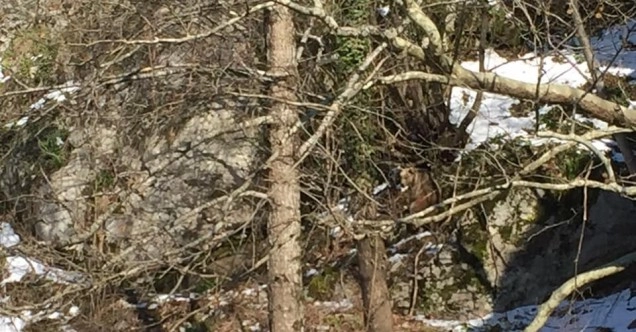 Bozayının kayalık bölgede yiyecek aradığını fark eden Ahmet Açıkgöz (39) cep telefonu ile o anları kaydetti.