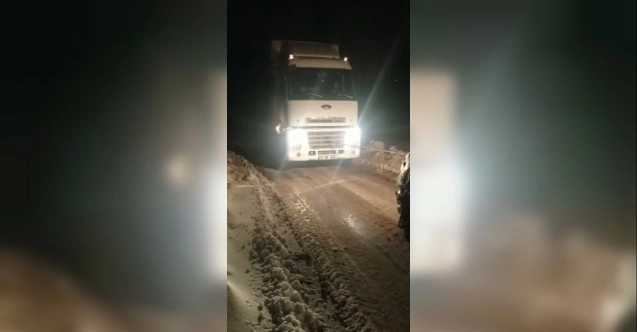 Elazığ’da kar ve buzlanmadan dolayı yolanda çıkan tır, İl Özel İdaresi ekipleri tarafından kurtarıldı.