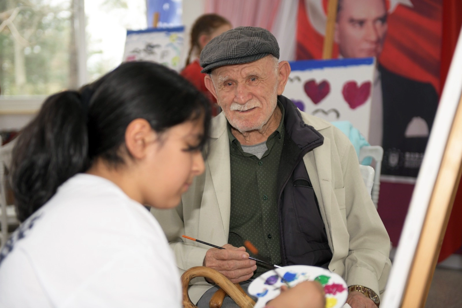Bursa Büyükşehir Belediyesi Kaplıkaya Huzurevi’ni 'Yaşlılara Saygı Haftası' kapsamında ziyaret eden Osmangazi Belediyesi Hüdavendigar Yetenek Evi Resim Sınıfı öğrencileri, huzurevinde kalan yaşlılarla ortak etkinlik yaptı. Huzurevi sakinleriyle birlikte ellerine fırçaları alan öğrenciler ortaklaşa karar verdikleri resimleri beraber yaptı. Yaşlılara resim yapma anlamında teknik destek olan öğrenciler onların unutamayacağı keyifli bir gün yaşamasını sağladı. Öğrenciler ve yaşlıların ortak çalışmasıyla ortaya muhteşem resimler çıktı. Düzenlenen etkinliğe Osmangazi Belediye Başkan Yardımcısı Mutlu Esendemir de öğrencilerle birlikte katıldı.