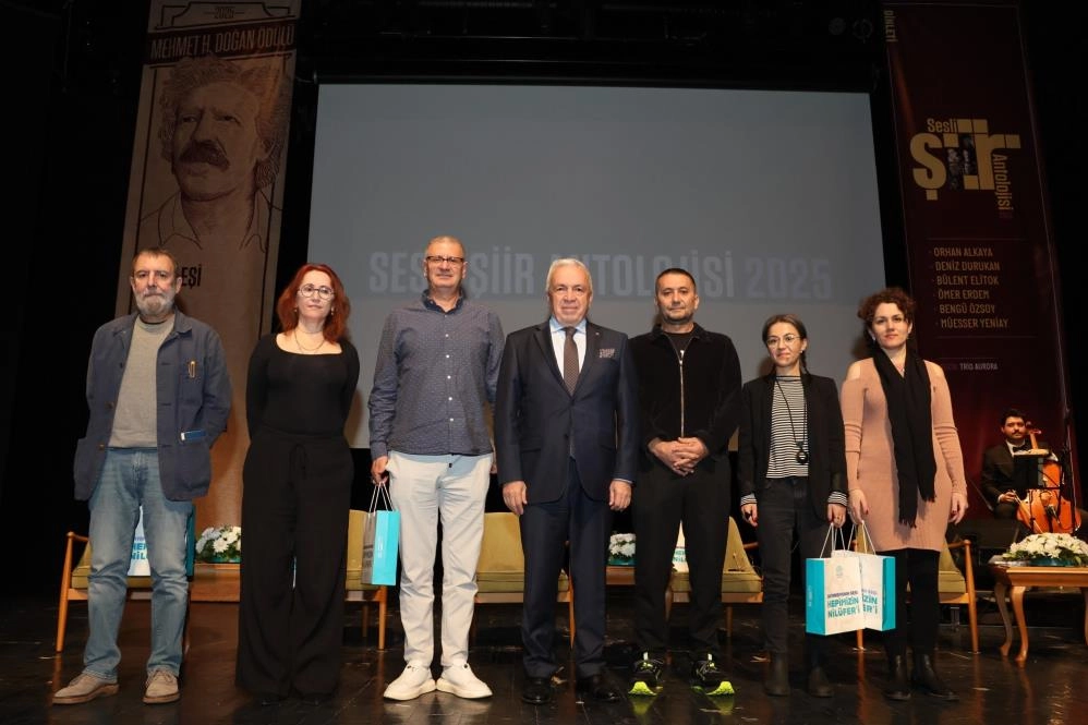 Nilüfer Belediyesi’nin, şiir eleştirmenlerinin adını yaşatmak ve Türkçe’de yayımlanan şiir eleştirisi kitaplarını görünür kılmak amacıyla gerçekleştirdiği Mehmet H. Doğan Ödül Töreni ve Sesli Şiir Antolojisi programı Nazım Hikmet Kültürevi’nde düzenlendi. Programa Nilüfer Belediye Başkanı Şadi Özdemir ve eşi Nuray Özdemir, Nilüfer Belediyesi Meclis Üyesi Ali Sezgin ile çok sayıda edebiyatsever katıldı. Programın açılışında konuşan Nilüfer Belediye Başkanı Şadi Özdemir, Şiir Kütüphanesi’nin Mehmet H. Doğan Ödül Töreni’ni 9 yıldır titizlikle sürdürdüğünü söyledi. 2012 yılında temeli atılan bu yapının şairlerin, araştırmacıların ve okurların nefes aldığı bir ev haline geldiğini ifade eden Başkan Şadi Özdemir, "Biliyoruz ki, bir kentin kültür hayatını derinleştiren şey kütüphaneleridir, sesini çoğaltan şey ise o kentin edebiyat hafızasıdır. Bu nedenle, Mehmet H. Doğan’ın anısını yaşatan bu ödül bizim için yalnız bir edebiyat etkinliği değil; Nilüfer’in kültürel mirasına atılmış güçlü bir imzadır" dedi. Bu yıl Seçici Kurul'un, iki değerli eseri ödüle değer bulduğunu belirten Başkan Şadi Özdemir, Mehmet H. Doğan Birincilik Ödülü’nün "Metapoetika" isimli eseriyle Ersun Çıplak’a; bu yıl ilk kez verilen Jüri Özel Ödülü’nün ise "İlkelliğin İhtişamı" isimli eseriyle Murat Kacıroğlu’na layık görüldüğünü aktardı. Jüri Başkanı Metin Celâl ve Seçici Kurul’da bulunan değerli isimlere teşekkür eden Başkan Şadi Özdemir, ödül almaya hak kazanan isimleri de tebrik etti. Özdemir, gecede Sesli Şiir Antolojisi’nde 6 kıymetli şairin kendi seslerinden şiirlerini okuyacağını ifade ederek, keyifli bir gece yaşanacağını vurguladı. Konuşmaların ardından, Asuman Susam, Gültekin Emre, Haydar Ergülen, Metin Celâl, Nilay Özer, Orhan Alkaya ve Orhan Tekelioğlu’ndan oluşan Seçici Kurulun belirlediği isimlere ödülleri takdim edildi. Ödüle değer görülen Ersun Çıplak ve Murat Kacıroğlu’na ödüllerini Başkan Şadi Özdemir, Jüri Başkanı Metin Celâl ve Orhan Alkaya takdim etti. Gecede Metin Celâl’in soruları ile Ersun Çıplak söyleşi gerçekleştirdi. Eğitim hayatı ve yazın hayatına girişinden bahseden Çıplak, kendisini de edebiyat aşığı olarak tanımladı. Gelişimde eleştirinin öneminden de bahseden Çıplak, eleştiriye tahammül edilen dönemlerin yaşanmasının önemini aktardı. Çıplak, konuşmasında organizasyon gerçekleşmesinde katkılarından dolayı Nilüfer Belediye Başkanı Şadi Özdemir ve çalışanlara teşekkür etti. Gecenin Sesli Şiir Antolojisi bölümünde ise Orhan Alkaya, Deniz Durukan, Bülent Elitok, Ömer Erdem, Bengü Özsoy ve Müesser Yeniay; Nilüfer Oda Orkestrası sanatçılarının eşliğinde şiirlerini seslendirdi. Renkli etkinlik şiirler ve enstrümanlar eşliğinde tamamlandı.