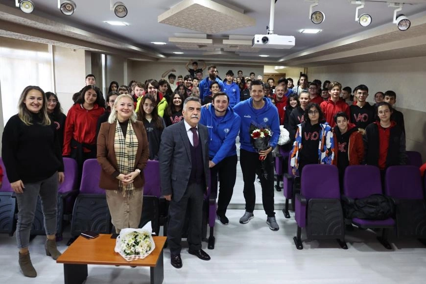 Nilüfer ve Bursa’yı THF Erkekler Hentbol Süper Lig’inde temsil eden Nilüfer Belediyespor Erkek Hentbol Takımı sporcuları ve teknik heyeti Vahide Aktuğ Ortaokulu’na konuk oldu. 130 öğrenciyle bir arayan gelen sporcular sportif kariyer ve gelişimleriyle ilgili açıklamalarda bulundu. Baş antrenör İlknur Kurtuluş, yardımcı antrenör Selim Muti, oyunculardan kaptan Gökhan Şanlı, Aleksander, Batuhan, Ömer ve Mücahit, başarılı sporcu olmanın yolları, sporun insan hayatına katkıları ve başarı için motivasyonun önemi üzerine gelen soruları cevapladı. Etkinliğe katılan Nilüfer Belediye Başkan Yardımcısı Dr. Sibel Özer de, sporun her branşına kurum olarak katkı sunduklarını ifade ederek, çocuklara mutlaka bir spor dalıyla uğraşmaları yönünde öğütler verdi. Vahide Aktuğ Ortaokulu Müdürü Rafet Yılmaz da sporcu ve teknik heyete teşekkür ederek çiçek verip başarılar diledi.