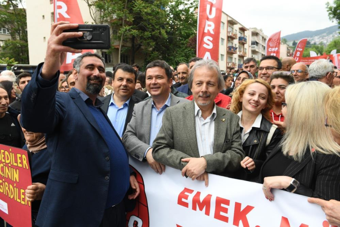 Bursa'daki 1 Mayıs Emek ve Dayanışma Günü yürüyüşüne katılan Osmangazi Belediye Başkanı Erkan Aydın, işçilerin bayramını kutladı.