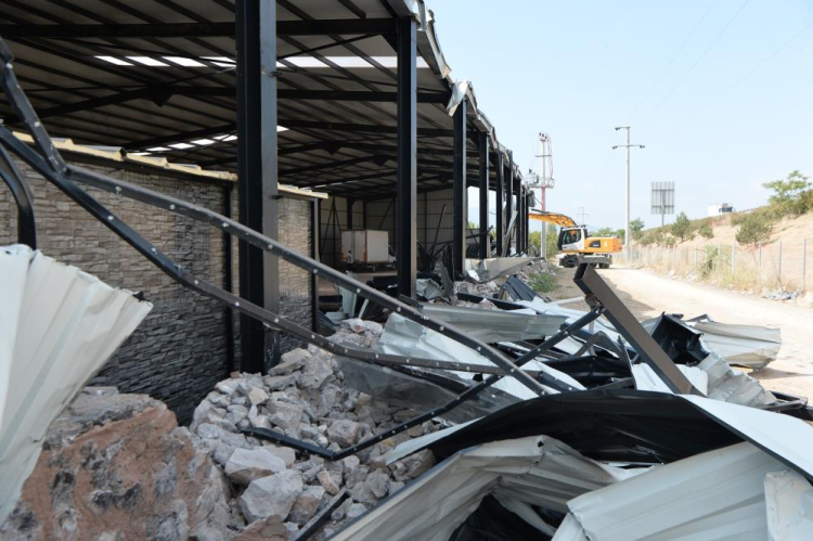 Osmangazi Belediyesi, ilçedeki tarım arazilerinin korunması adına kaçak yapılaşmaya karşı etkin bir mücadele ortaya koyuyor. Tarım arazileri üzerine kaçak olarak inşa edilen konut, işyeri, fabrika ve depo gibi yapılar belediye ekipleri tarafından tek tek tespit edilerek yıkılıyor. Tarım arazilerini mercek altına alan Yapı Kontrol Müdürlüğü ekipleri, son olarak İsmetiye Mahallesi'nde ruhsatsız olarak inşa edildiği belirlenen bir depoyu yıktı. Yürürlükteki kanunlar çerçevesinde hareket eden belediye ekipleri, ruhsatsız deponun yıkımı için sabah erken saatlerde bölgeye gitti. Geniş güvenlik önlemleri altında gerçekleştirilen yıkımda, kaçak depo iş makinesi ile yıkılarak kullanılamaz hale getirildi.