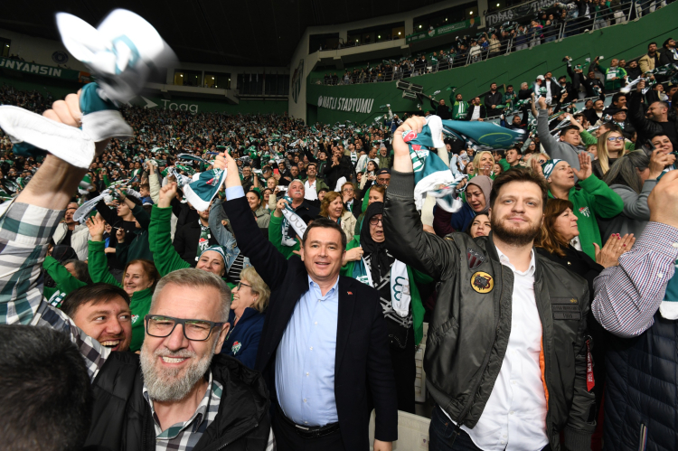 Osmangazili vatandaşlarla tribünde yakından ilgilenen Osmangazi Belediye Başkanı Erkan Aydın da, müsabaka boyunca coşkularını paylaştı. Yeşil beyazlı taraftarların da yoğun ilgisiyle karşılaşan Başkan Aydın, fotoğraf isteklerini geri çevirmeyerek, o anları ölümsüzleştirdi.