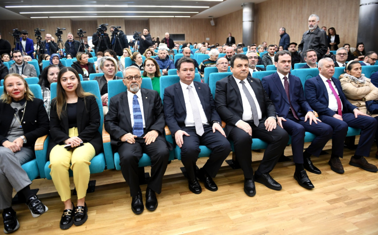 Prof. Dr. Görür’ün konuşması, katılımcılar arasında büyük ilgi uyandırdı ve dikkatle dinlendi. Başkan Aydın, söyleşinin ardından Prof. Dr. Görür’e teşekkür plaketi takdim etti.