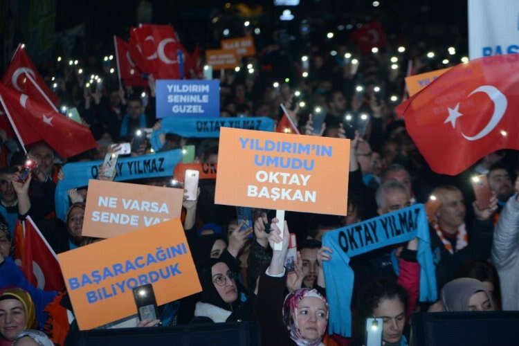 Cumhurbaşkanı Recep Tayyip Erdoğan'ın yeniden aday gösterdiği Yıldırım Belediye Başkanı Oktay Yılmaz, Bayrak Alanı’nda coşkuyla karşılandı. Meşale koridorundan geçerek Yıldırımlıları selamlayan Başkan Oktay Yılmaz, “Yıldırım’ın şahlanış dönemi başlıyor” dedi.