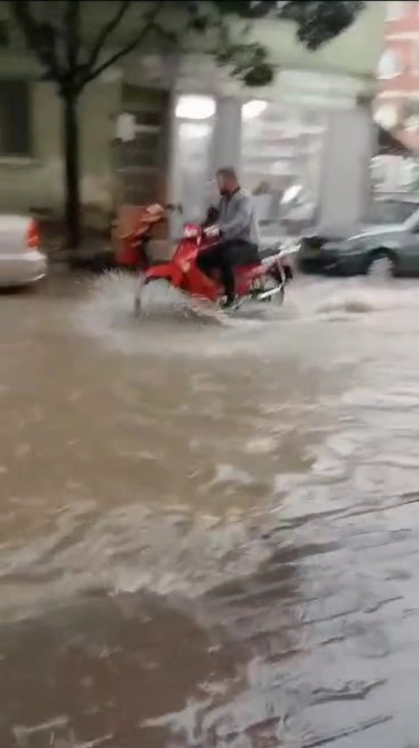 Bursa'nın İnegöl ilçesinde etkili olan sağanak yağış hayatı felç etti. İlçeyi esir alan yağış nedeniyle sokaklar ve caddeler göle döndü.