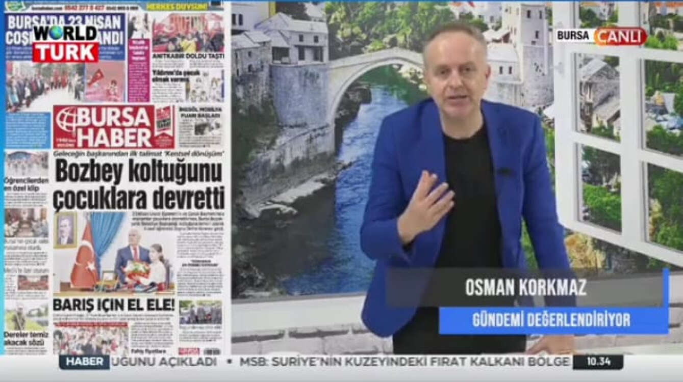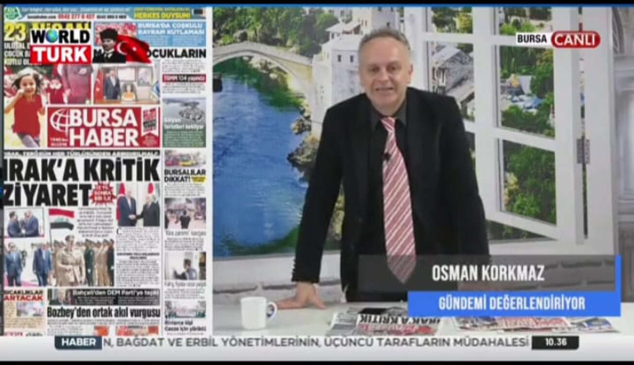 Son olarak ulusal bazda yayın yapan World Türk’te Osman Korkmaz’ın hazırlayıp sunduğu gündem değerlendirmesi programında Bursa’ya dair gündem Bursa Haber Gazetesi’nden izleyicilerine aktarıldı.
