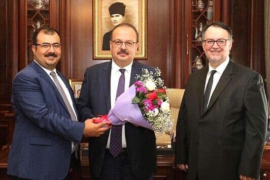 Bursa Haber Gazetesi imtiyaz sahibi Cüneyt Dizdar ve Gazeteci Ömer Küçükkaya, Bursa Valisi Yakup Canbolat'ı makamında ziyaret ettiler.