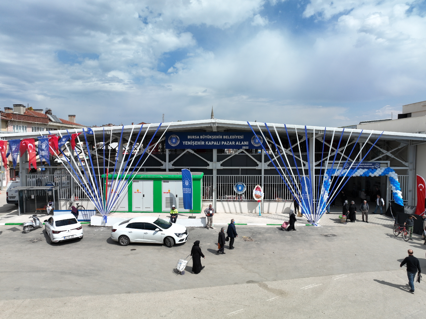 Bursa Büyükşehir Belediyesi’nin Yenişehir’e kazandırdığı, bünyesinde 154 araçlık otopark, düğün salonu, bebek bakım odası, fuaye alanı ve dükkan bulunan kapalı pazar alanı ve hizmet binası törenle hizmete açıldı.