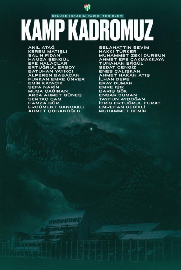 Bursaspor Kulübü'nün, Özlüce'de başlayacak sezon hazırlıkları için 33 kişilik kamp kadrosu açıklandı.