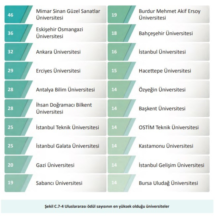 YÖK Başkanlığı tarafından yıllık olarak yayımlanan raporda tüm üniversiteler 5 ana kategoride değerlendirmeye tabi tutuldu. Eğitim ve Öğretim, Araştırma-Geliştirme, Proje ve Yayın, Uluslararasılaşma, Sürdürülebilirlik ile Topluma Hizmet ve Sosyal Sorumluluk başlıkları üzerinden üniversitelerin genel durumunun tespit edildiği raporda BUÜ farklı kategorilerde adından söz ettirmeyi başardı.