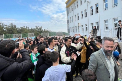 Bursaspor’un başarılı isimleri Berkan Mahmut Keskin, Muhammed Zeki Dursun, Kerem Matışlı, Mustafa Gençgirdi ve Vefa Temel, Nilüfer ilçesinde bulunan İsmail-Kadriye Solakoğulları Ortaokulu öğrencileriyle buluştu.