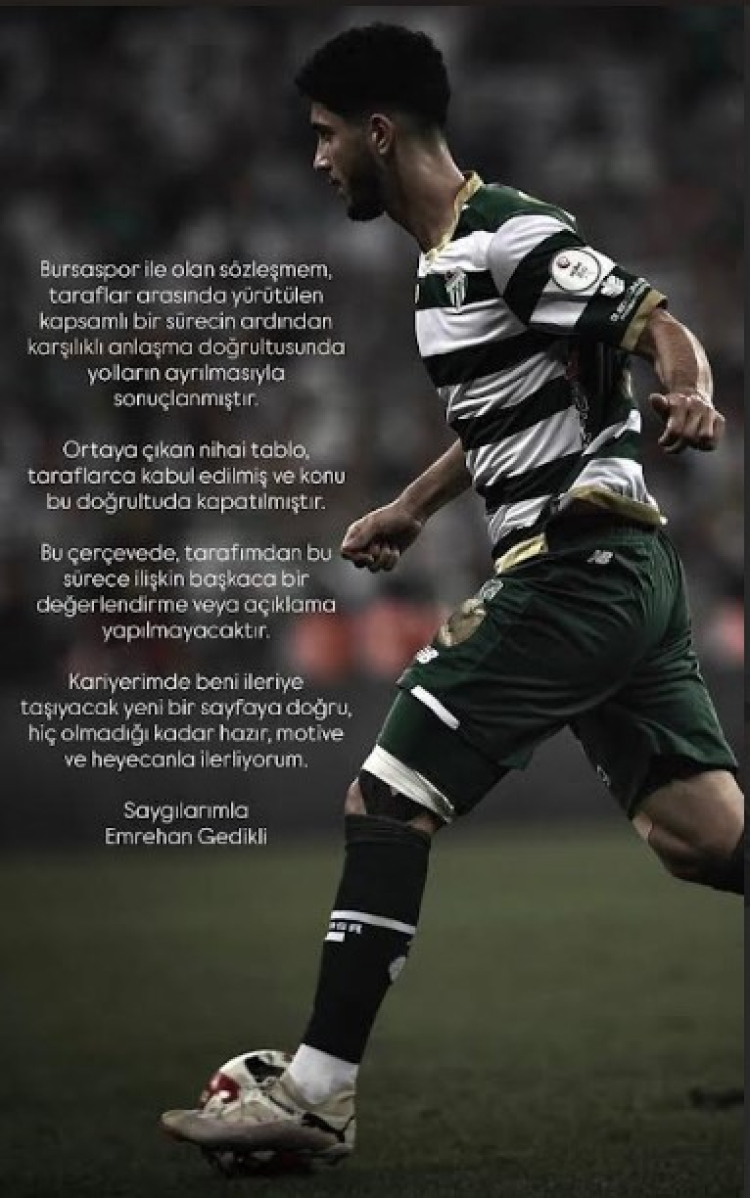 Bursaspor'un sezon başında Konyaspor'dan transfer ettiği genç forvet Emrehan Gedikli, yolların ayrılmasından sonra ilk kez açıklama yaptı.