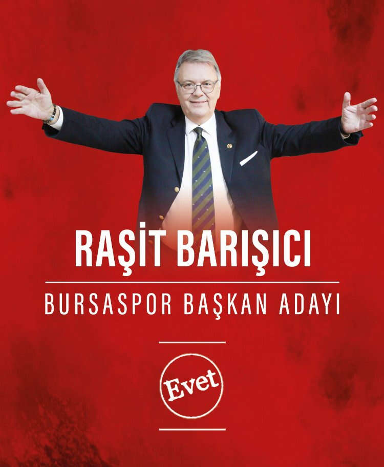 Raşit Barışıcı, "Bursaspor Türkiye’nin en önemli markalarından biri. Projelerimizle Bursaspor’un bir marka olduğunu göstereceğiz. Eski Bursaspor’u Bursa’ya kazandıracağız." dedi.